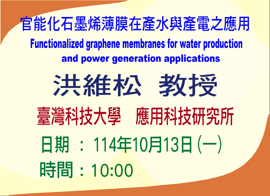 114年10月13日(一)10-12點 臺灣科技大學 應用科技研究所 洪維松教授 發佈日期:2025-10-15 瀏覽人次:12 友善列印 展開社群分享 分享到臉書 分享到X 分享給LINE好友 您的瀏覽器不支援JavaScript語法,如需列印網頁內容,請使用鍵盤Ctrl+P即可列印;如需將內容分享到各社群平台網站上,請點選連結進行分享:分享到臉書、分享到Google+、分享到推特 回前一頁 此段 JavaScript 提供回上一頁功能,若瀏覽器不支援 JavaScript,請使用鍵盤 Backspace 或瀏覽器回上一頁功能